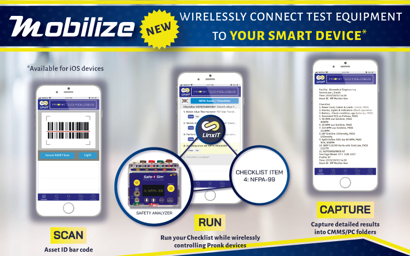 Mobilize is a complete wireless solution that connects Safe-T Sim® Safety Analyzer, SimCube® and OxSim Flex® Vital Signs Simulators and FlowTrax® IV Pump Analyzer to your smart device. This provides complete flexibility to control all these products from one user interface, set up your own test protocols or run your CMMS procedures right from your Apple iOS device.