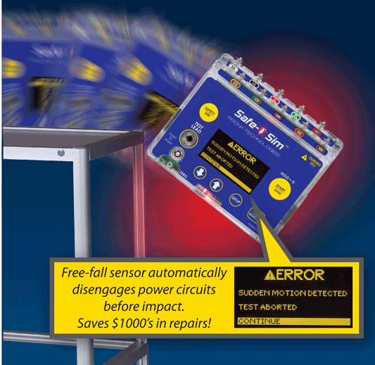 Unit will glow to indicate a Pass or Fail Result: Safe-T Sim Mobilize provides visual and audible feedback of each test plus an overall test result. See P/F results from 10+ feet away: Red = Fail / Green = Pass. Never miss a failing result. Repeat only the failed test, not the entire autosequence, for faster results.